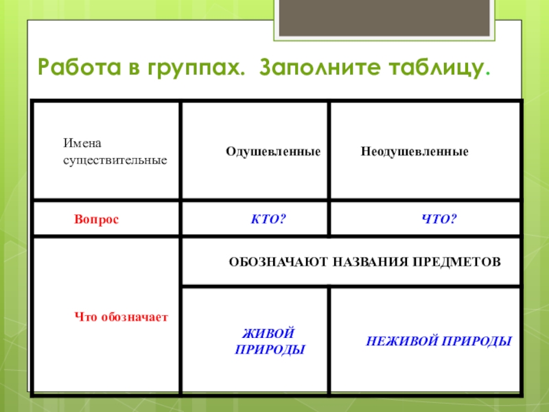 Одушевленные имена существительные отвечают на вопрос кто? (они живые)
