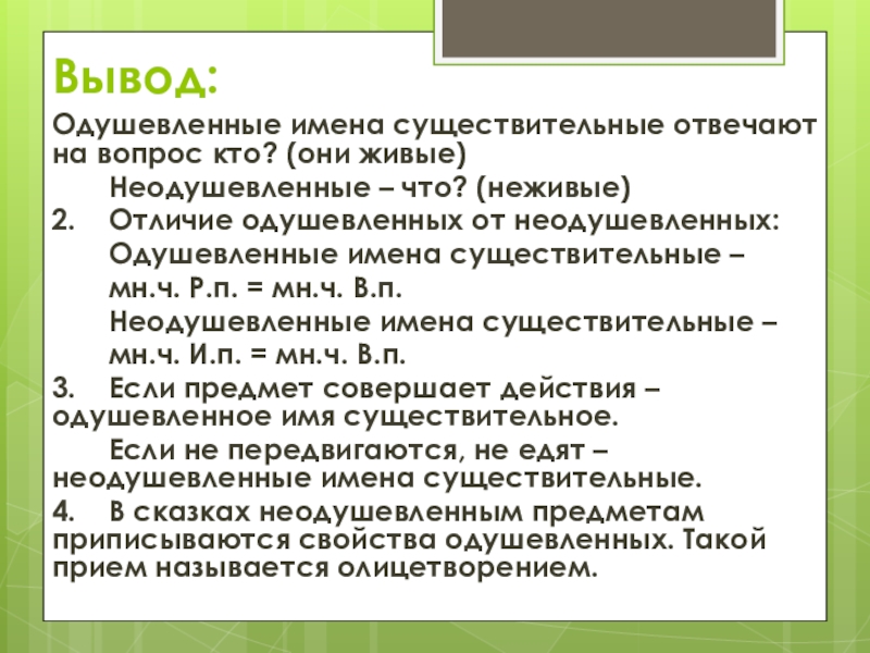 3. Если предмет совершает действия – одушевленное имя существительное.