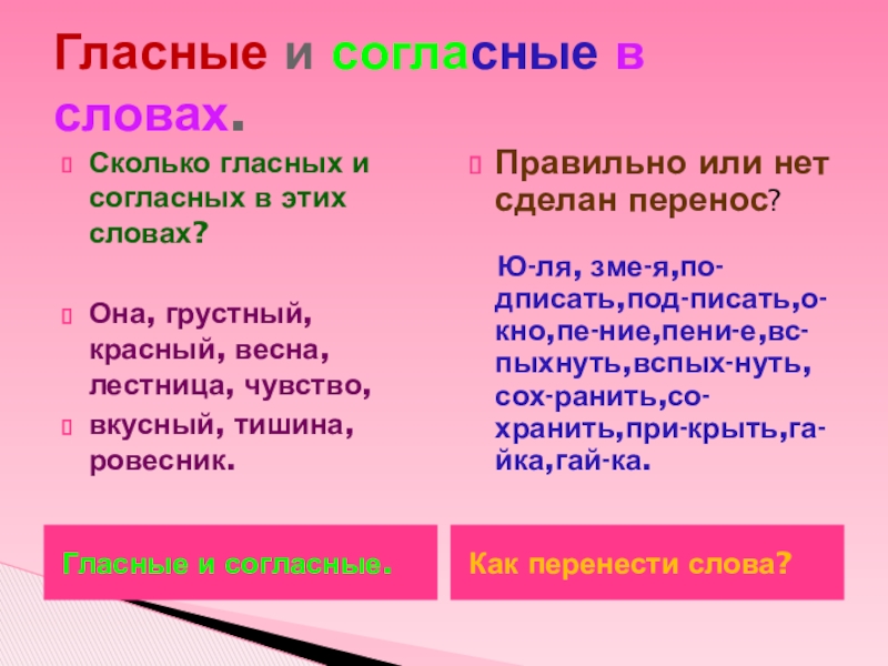 Ю-ля, зме-я,по-дписать,под-писать,о-кно,пе-ние,пени-е,вс-пыхнуть,вспых-нуть,сох-ранить,со-хранить,при-крыть,га-йка,гай-ка.