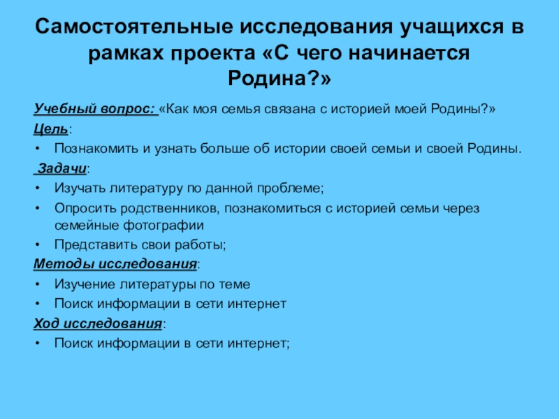 формирование представления об истории семьи, родного края, своей страны;