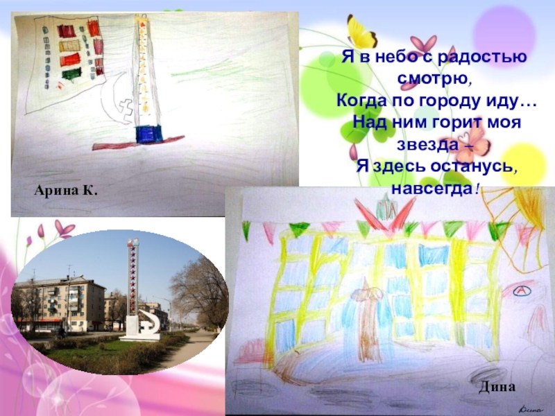 Арина К.ДинаЯ в небо с радостью смотрю,  Когда по городу иду…  Над ним горит моя звезда –