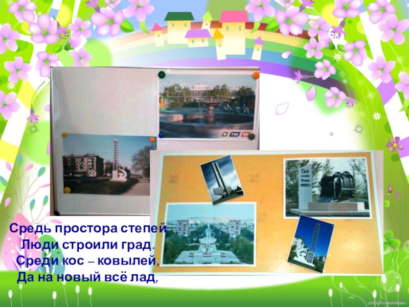 Слайд 2Средь простора степей Люди строили град. Среди кос – ковылей, Да на новый всё