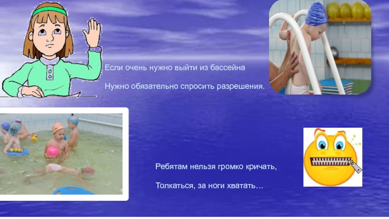 -бегать в помещении бассейна, в раздевалках;