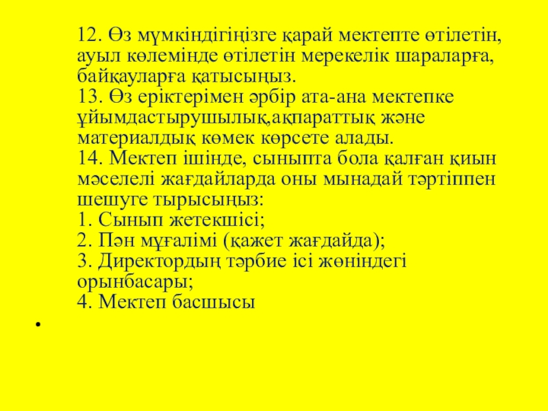 Біз сіздерді мектептегі оқушы өміріне қатысты өтетін іс – шараларға және мектептегі жиналыстарға белсенді түрде қатысуларыңызды шақырамыз!