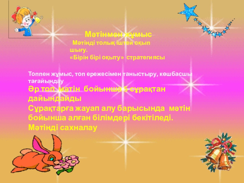 Сұрақтарға жауап алу барысында мәтін бойынша алған білімдері бекітіледі.