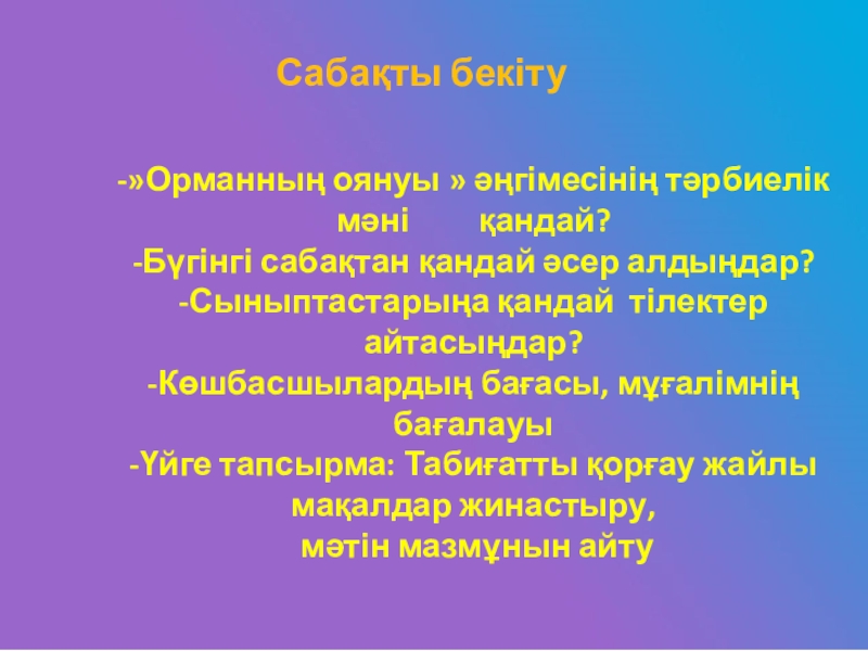 -Үйге тапсырма: Табиғатты қорғау жайлы мақалдар жинастыру,