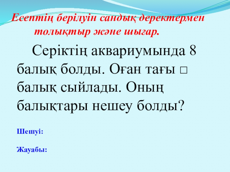 Серіктің аквариумында 8 балық болды. Оған тағы □ балық сыйлады. Оның балықтары нешеу болды?