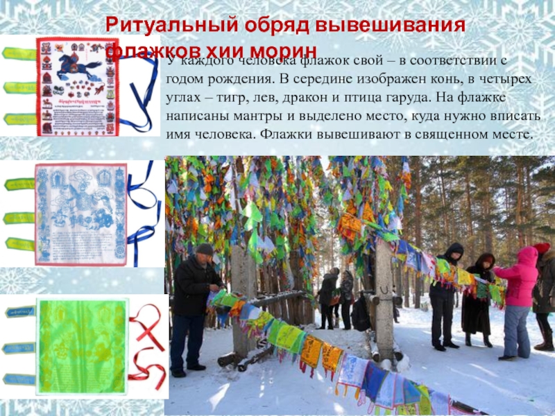 Слайд 8Ритуальный обряд вывешивания флажков хии морин