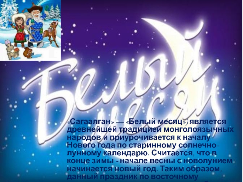 Слайд 2«Сагаалган» — «Белый месяц») является древнейшей традицией монголоязычных народов и приурочивается