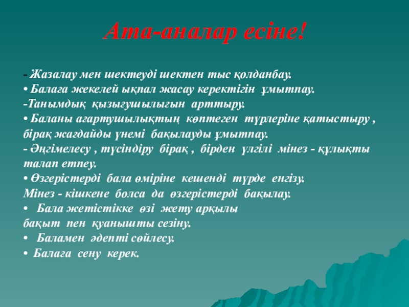 *Ата – ананы баланың ойлау, даму ерекшеліктеріне , көңіл күйіне мән беруге бағыттау.