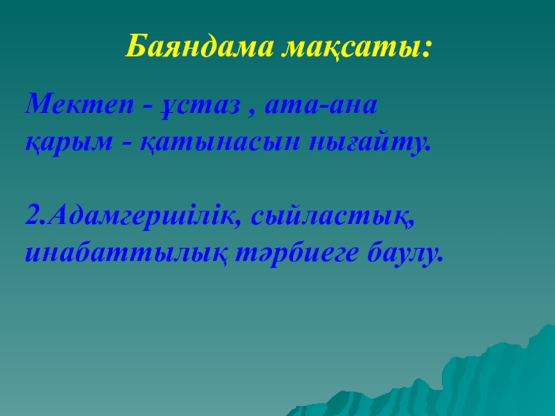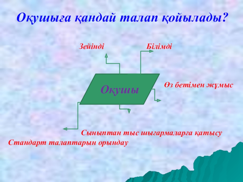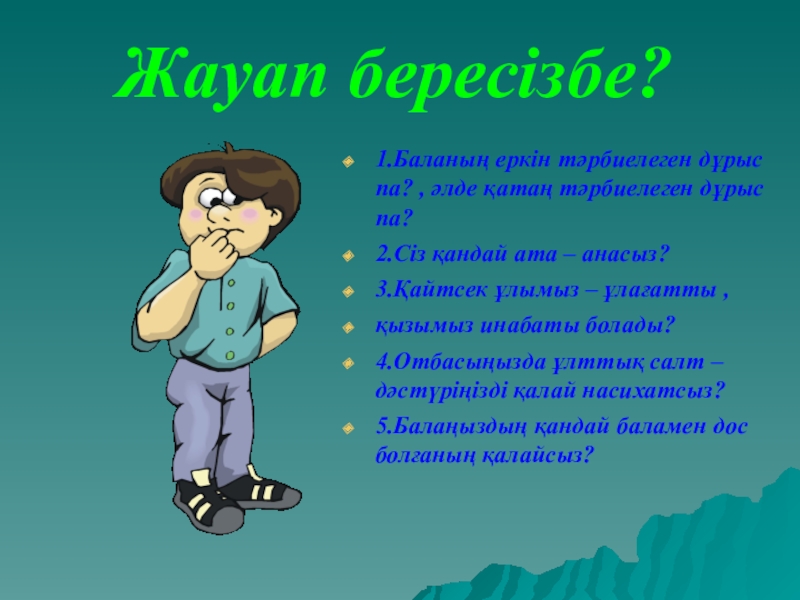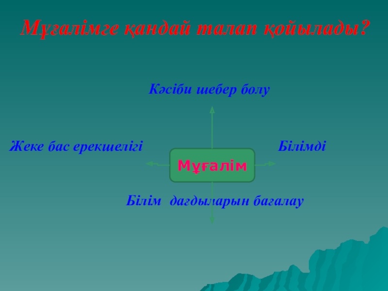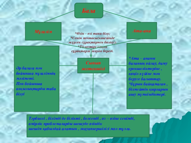 Тәрбиелі , білімді де білікті , белсенді , өз – өзіне сенімді, өмірлік проблемаларды шешуде өзіндік