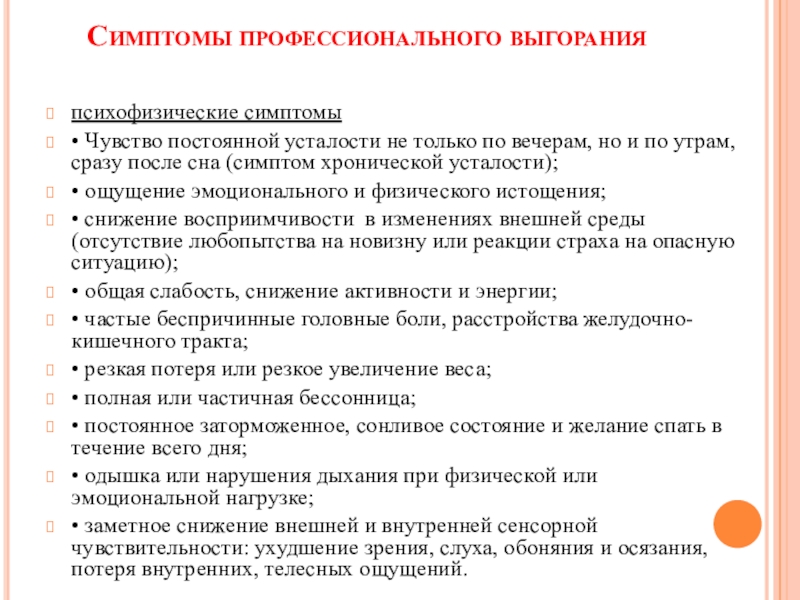 • Ощущение, что работа становится все тяжелее и тяжелее,