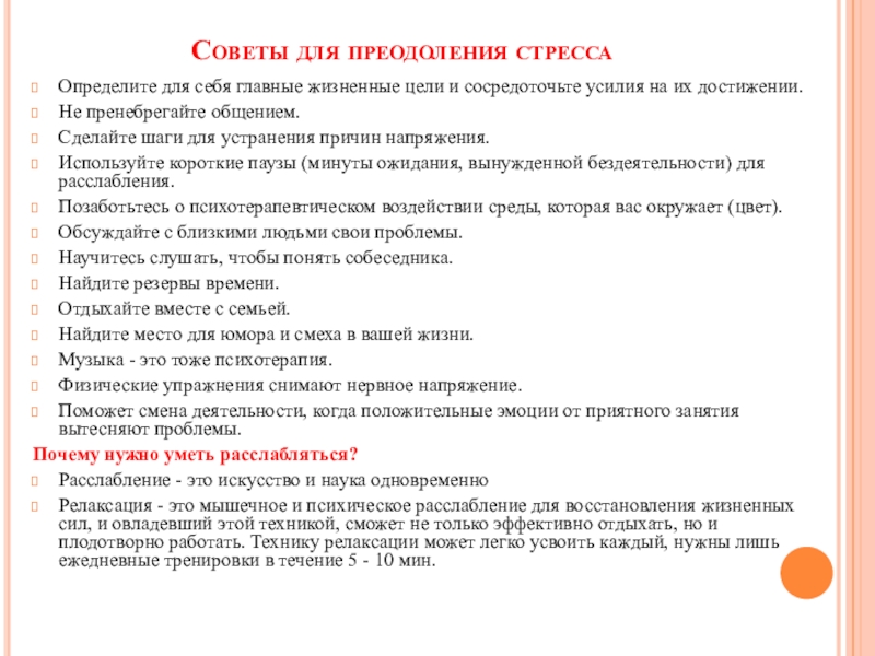 Стресс необходим в жизни человека. Он помогает приспособиться к новым условиям, влияет на работоспособность творчество, учит нас преодолевать препятствия на жизненном пути, мобилизовать собственные силы и становиться уверенными в себе.