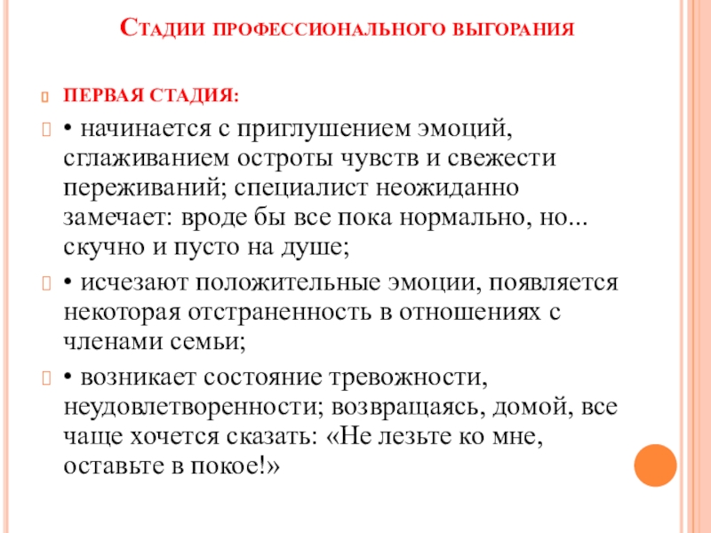 • возникает состояние тревожности, неудовлетворенности; возвращаясь, домой, все чаще хочется сказать: «Не лезьте ко мне, оставьте в покое!»