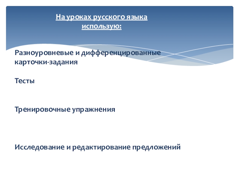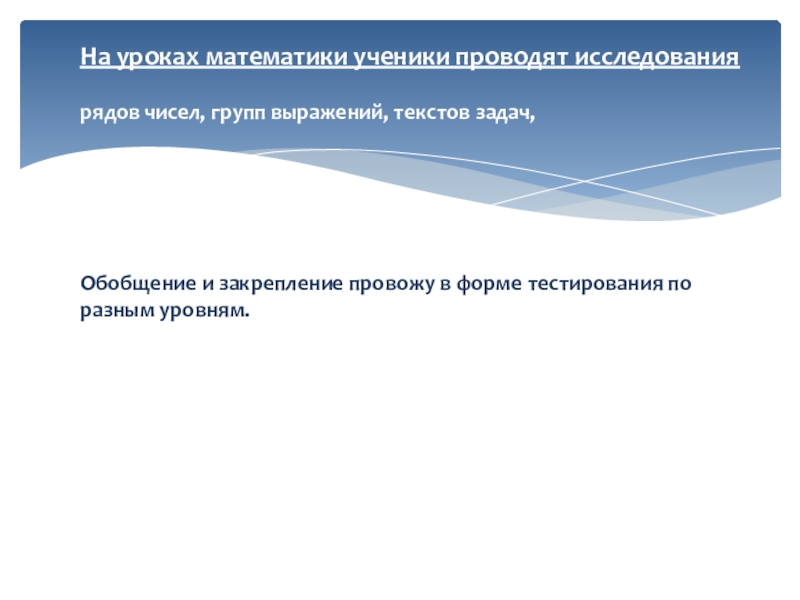 Обобщение и закрепление провожу в форме тестирования по разным уровням.