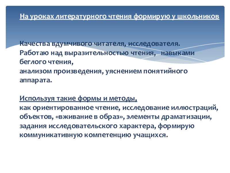 как ориентированное чтение, исследование иллюстраций, объектов, «вживание в образ», элементы драматизации,