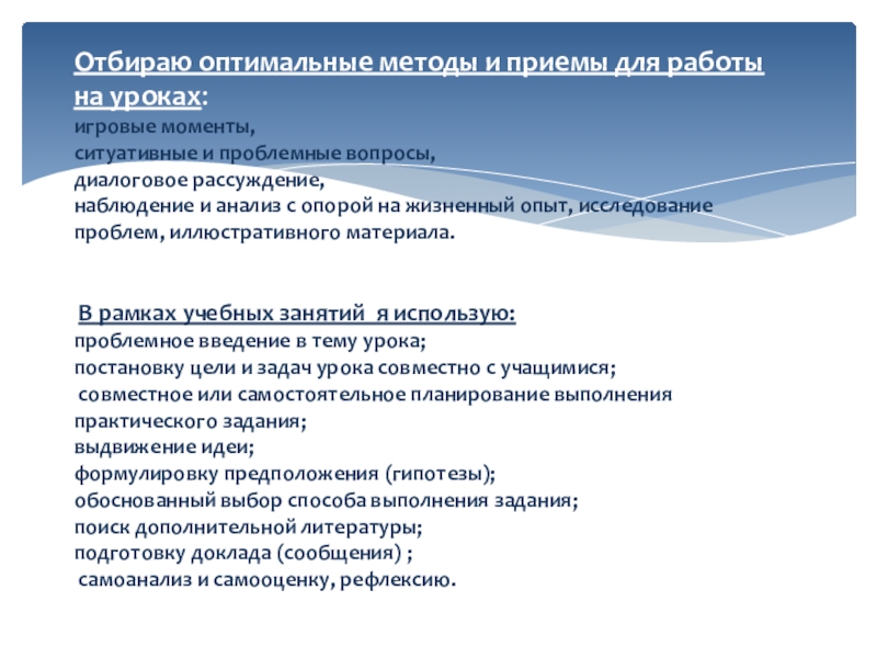 Слайд 16Отбираю оптимальные методы и приемы для работы на уроках: