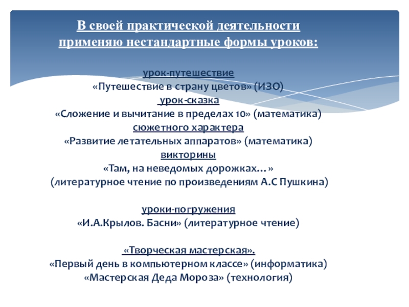 Слайд 22В своей практической деятельности применяю нестандартные формы уроков: