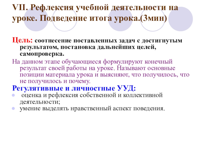 Слайд 24VII. Рефлексия учебной деятельности на уроке. Подведение итога урока.(3мин)