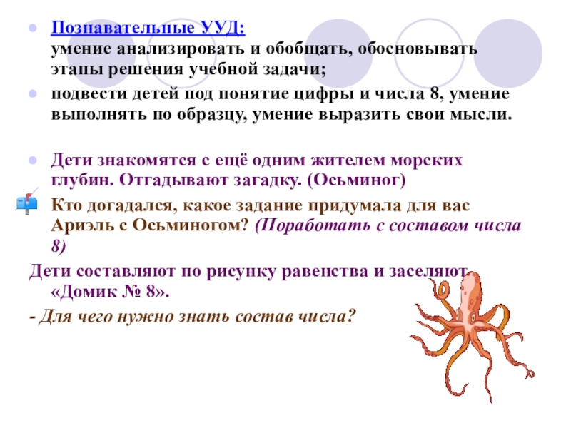 Кто догадался, какое задание придумала для вас Ариэль с Осьминогом? (Поработать с составом числа 8)