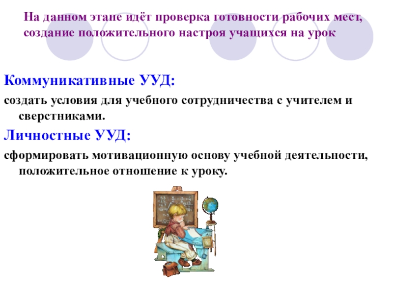 Слайд 9На данном этапе идёт проверка готовности рабочих мест, создание положительного настроя