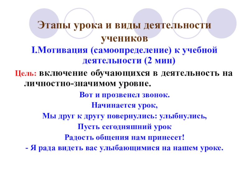 Слайд 7I.Мотивация (самоопределение) к учебной деятельности.