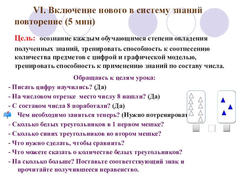 VI. Включение нового знания в систему знаний и повторение.