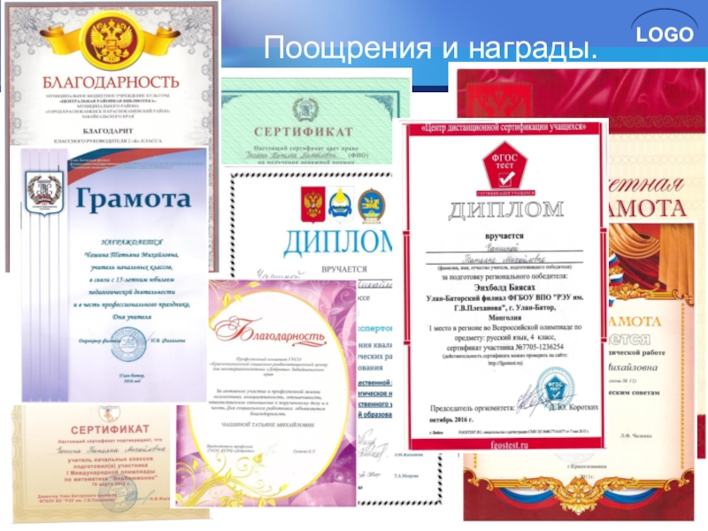 Слайд 3Поощрения и награды.