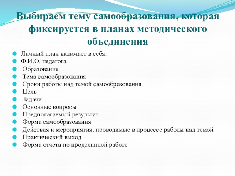 Слайд 15Выбираем тему самообразования, которая фиксируется в планах методического объединения