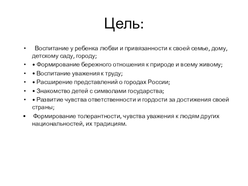 • Формирование толерантности, чувства уважения к людям других национальностей, их традициям.
