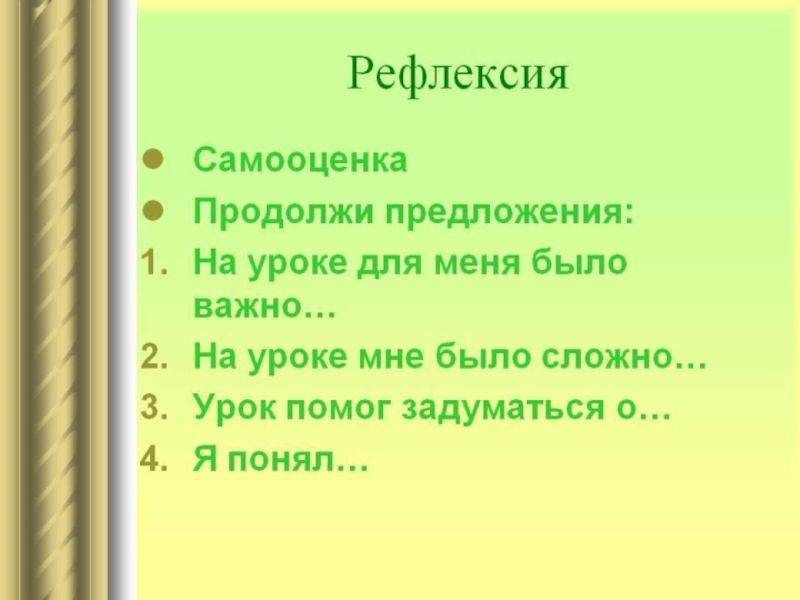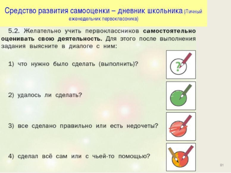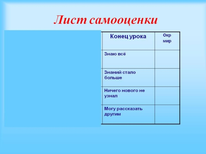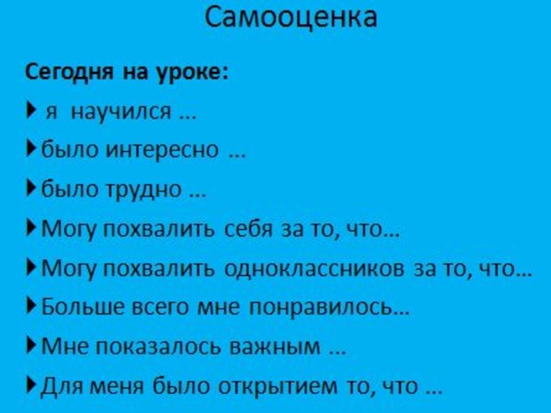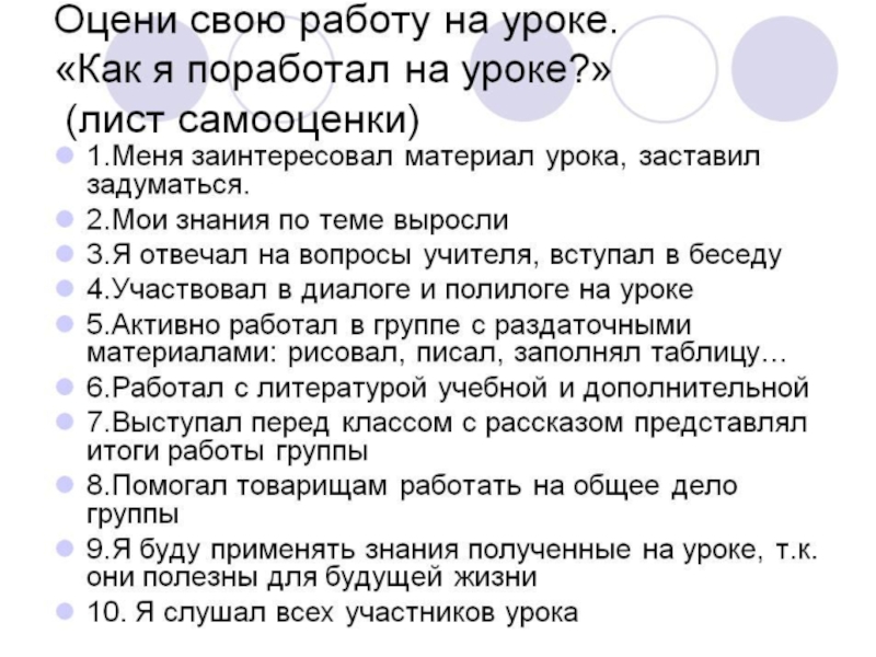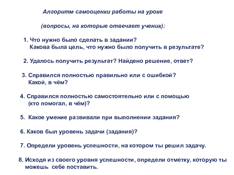Алгоритм самооценки работы на уроке