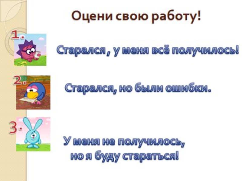 Если вы затруднялись, но преодолели затруднения – поставьте синий самолётик;