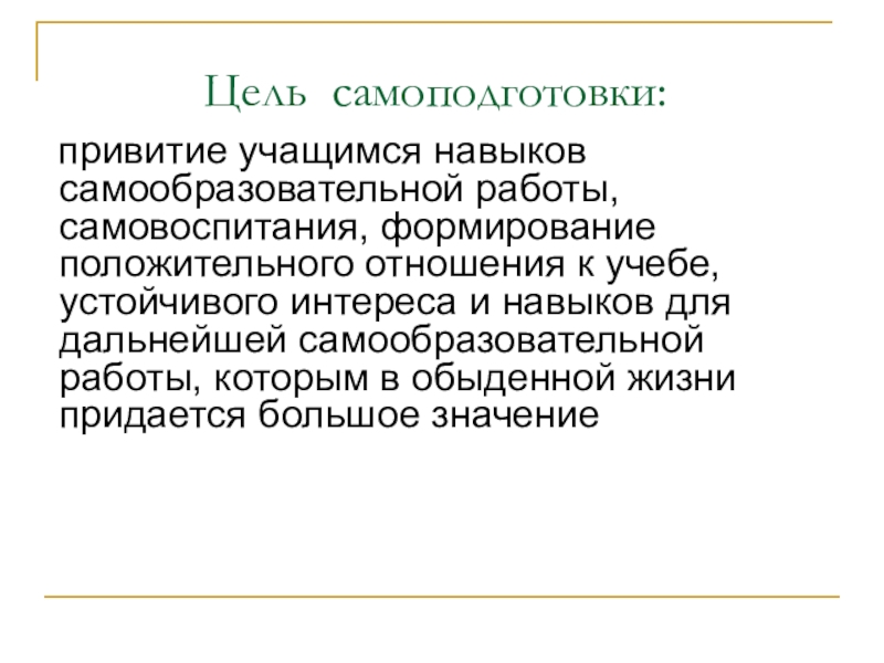 Слайд 2 Организация самоподготовки