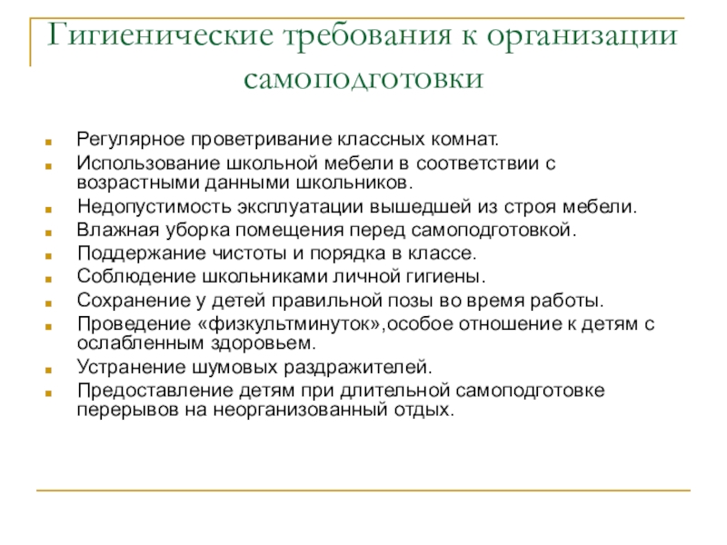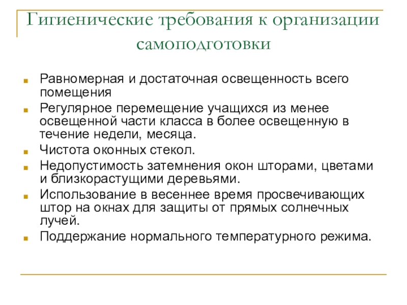 Гигиенические требования к организации самоподготовки