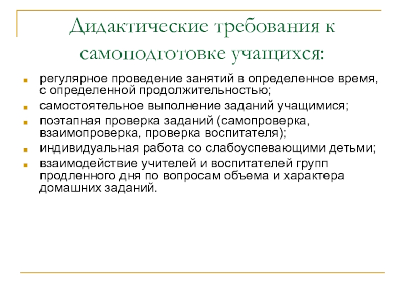 Слайд 7Дидактические требования к самоподготовке учащихся: