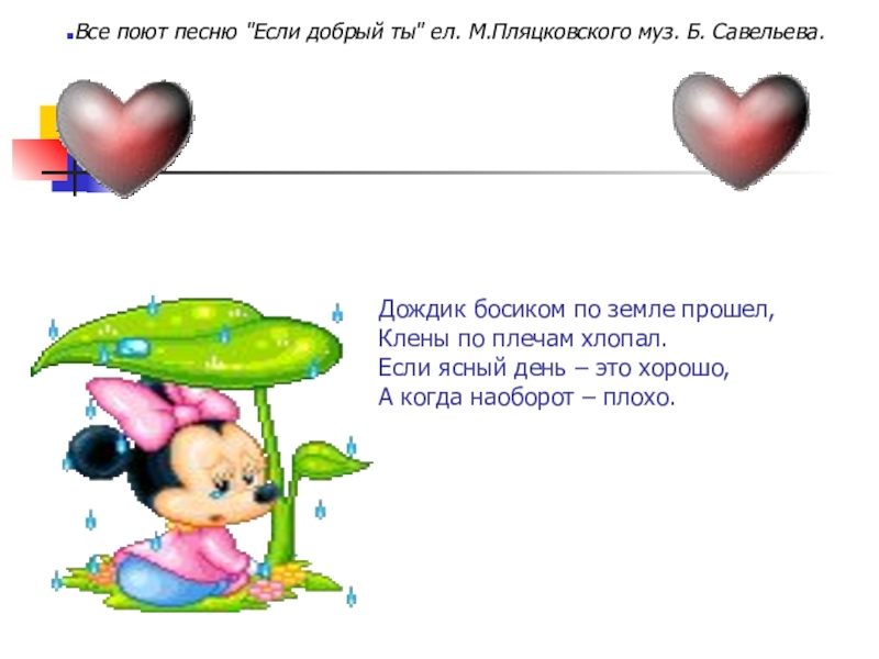 Все поют песню "Если добрый ты" ел. М.Пляцковского муз. Б. Савельева.