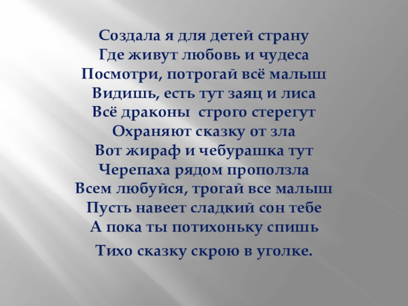 Это сайт презентаций, где можно хранить и обмениваться своими презентациями, докладами, проектами, шаблонами в формате PowerPoint с другими пользователями. Мы помогаем школьникам, студентам, учителям, преподавателям хранить и обмениваться учебными материалами.