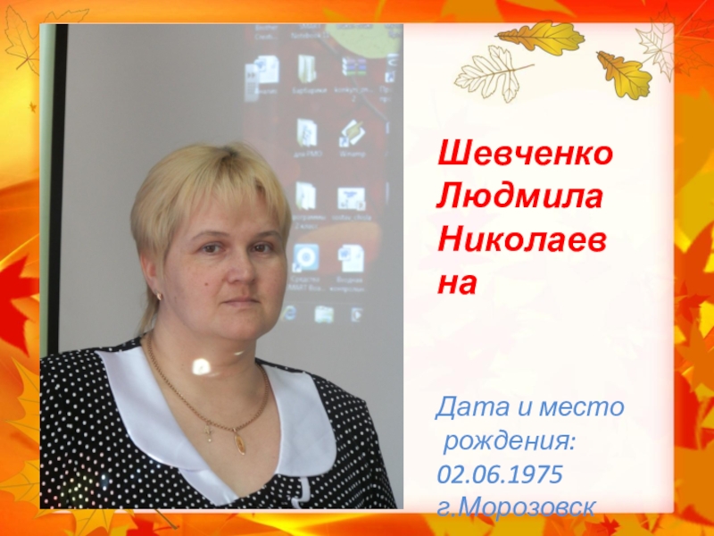 ШевченкоЛюдмилаНиколаевнаДата и место рождения:02.06.1975г.Морозовск