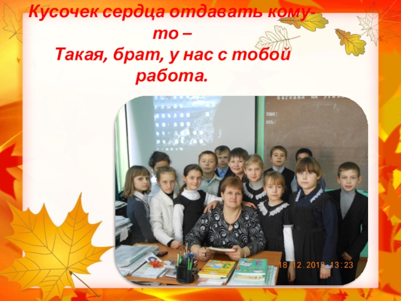 Слайд 15Кусочек сердца отдавать кому-то –  Такая, брат, у нас с тобой работа.