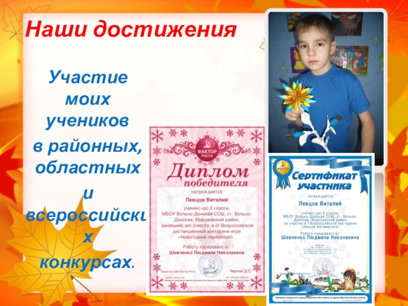 Наши достиженияУчастие моих учеников в районных, областных и всероссийских конкурсах.