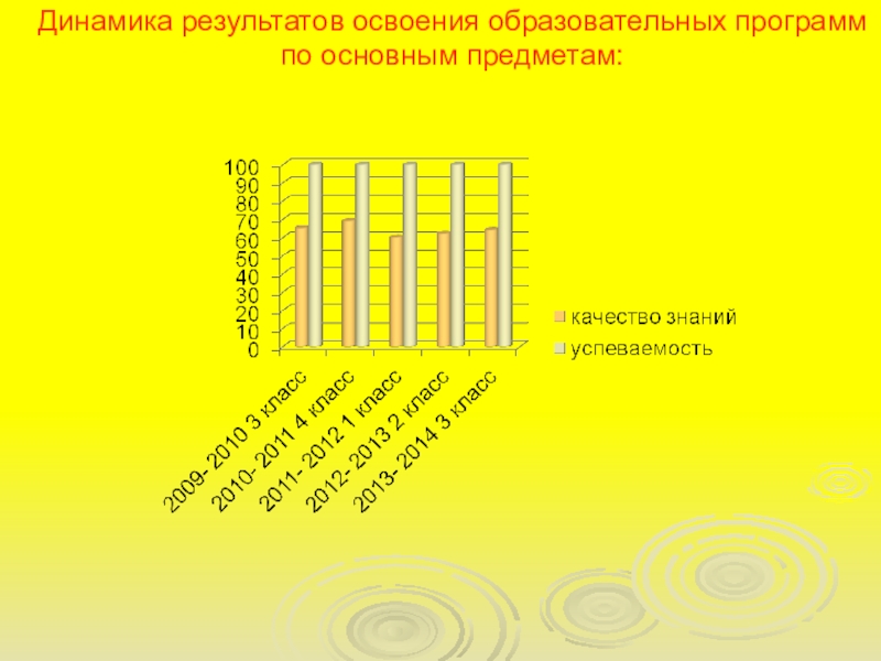 Слайд 5Динамика результатов освоения образовательных программ по основным предметам: