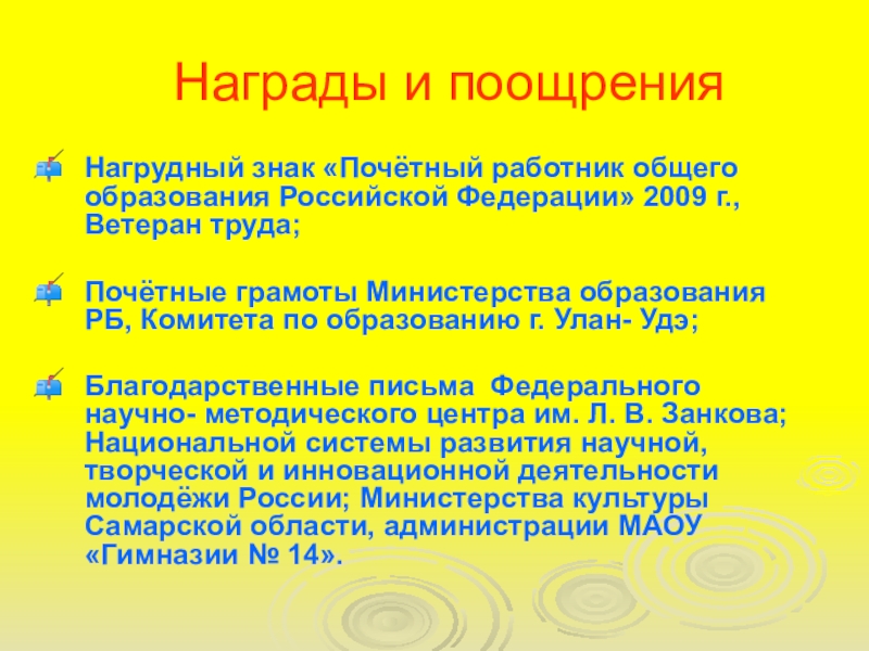 Слайд 4 Награды и поощрения
