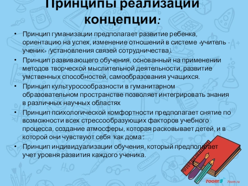 Принцип гуманизации предполагает развитие ребенка, ориентацию на успех, изменение