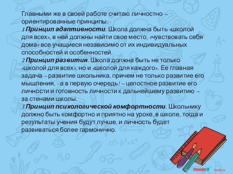 Слайд 5Главными же в своей работе считаю личностно – ориентированные принципы: