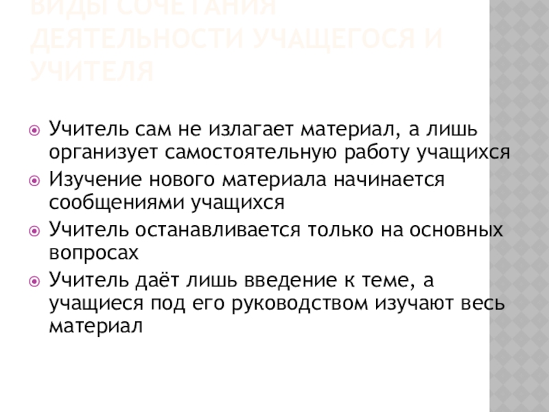 Слайд 3ВИДЫ СОЧЕТАНИЯ ДЕЯТЕЛЬНОСТИ УЧАЩЕГОСЯ И УЧИТЕЛЯ