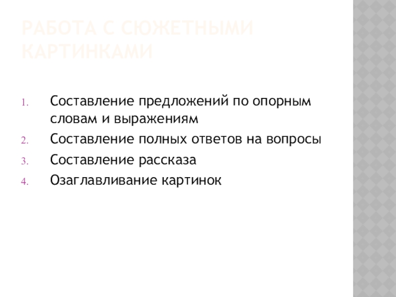 Слайд 18РАБОТА С СЮЖЕТНЫМИ КАРТИНКАМИ