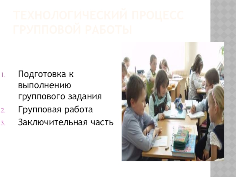 Слайд 14ТЕХНОЛОГИЧЕСКИЙ ПРОЦЕСС ГРУППОВОЙ РАБОТЫ