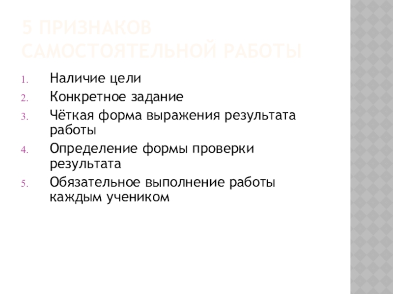 Слайд 45 ПРИЗНАКОВ САМОСТОЯТЕЛЬНОЙ РАБОТЫ