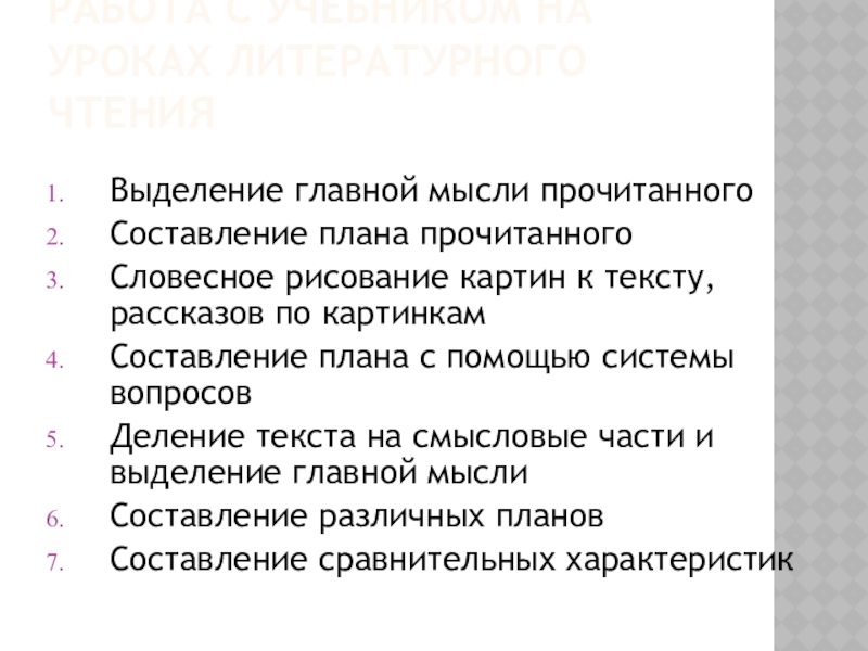 Слайд 19РАБОТА С УЧЕБНИКОМ НА УРОКАХ ЛИТЕРАТУРНОГО ЧТЕНИЯ
