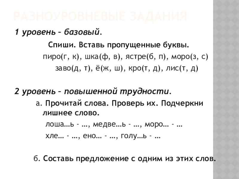 Слайд 8РАЗНОУРОВНЕВЫЕ ЗАДАНИЯ